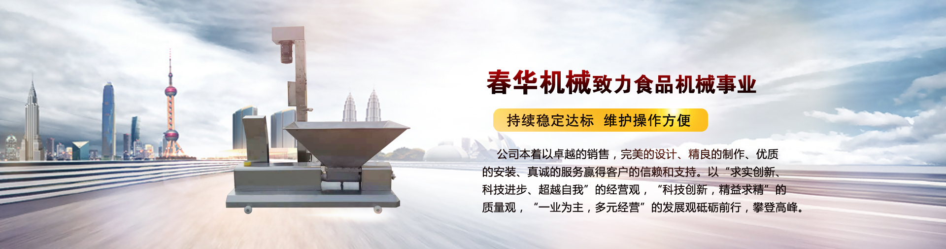 山東省春華機械科技有限公司坐落在素有恐龍之鄉 之美譽,東鄰青島,南毗日照的現代化城市-山東諸城。公司經營范圍是研發、加工、銷售食品機械、環保機械。自公司成立至今與諸多企業建立合作關系。公司本著以卓越的銷售,完美的設計、精良的制作、優質的安裝、真誠的服務贏得客戶的信賴和支持。以...