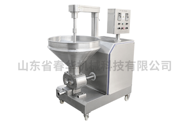 該泵浦機采用自動式、腳踏式控制,主要配合多功能機組的使用,起到填充、灌漿的作用,合理的齒輪泵腔設計使其出料壓力大、灌漿穩定,泵體設有減壓螺栓以便微調壓力,料斗雙層冷卻裝置,使漿體長時間生產保持新鮮低溫,采用變頻調速裝置,流量可調,操作方便,還可配套灌裝模具灌制鮑魚片、笑臉片等產品。