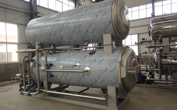 由于壓縮空氣是不良導熱體,況蒸汽本身又具有一定的壓力。因此,在殺菌時升溫過程中,不放進壓縮空氣,而只在達到殺菌溫度后處于保溫時,才開放壓縮空氣入鍋內,使鍋內增加0.5~0.8個大氣壓。特經過殺菌后,降溫冷卻時,停止供應蒸汽,將冷卻水壓入噴水管。由于鍋內溫度下降,蒸汽冷凝,而使鍋內力降低采用壓縮空氣的壓力來補償。